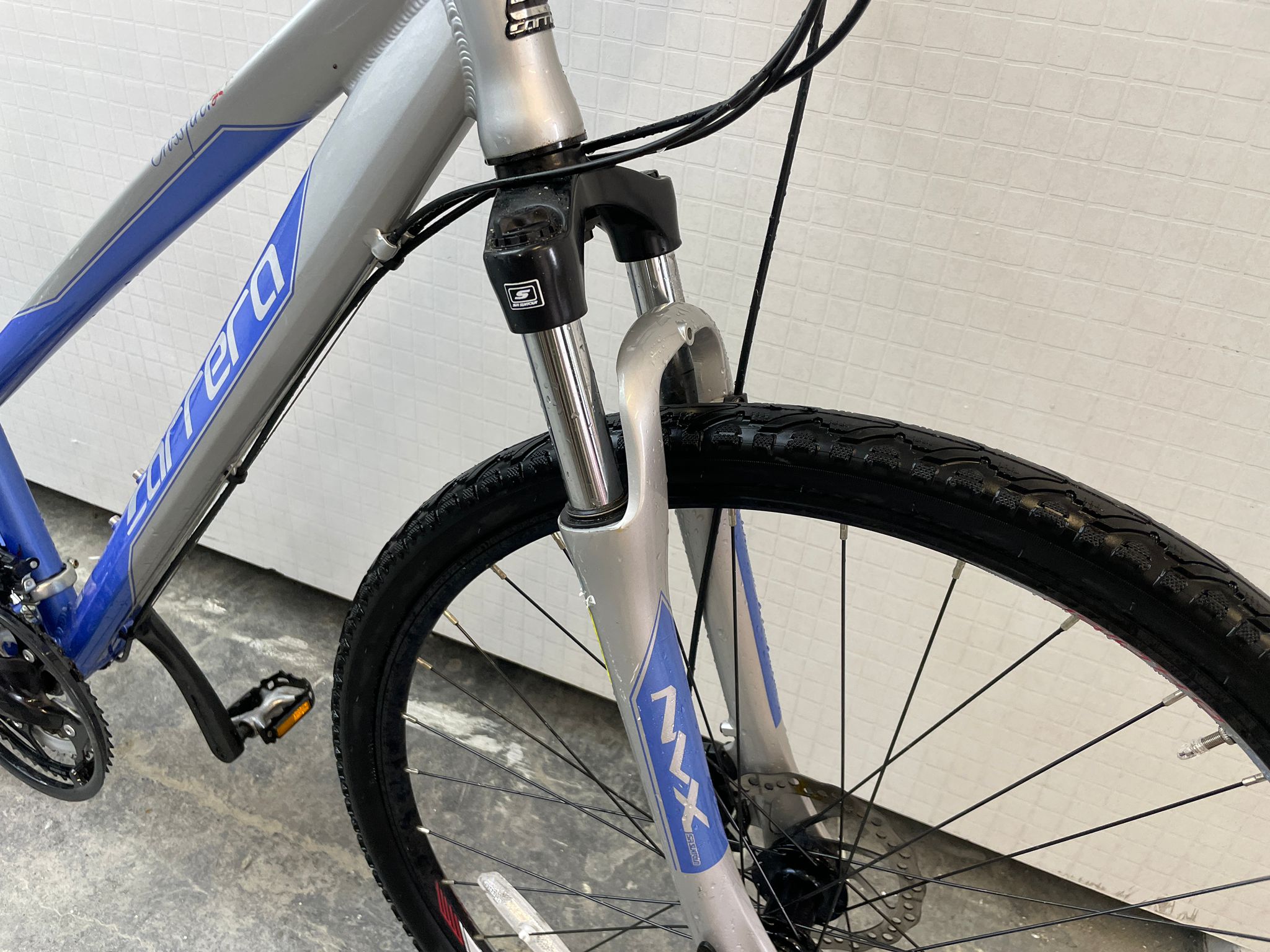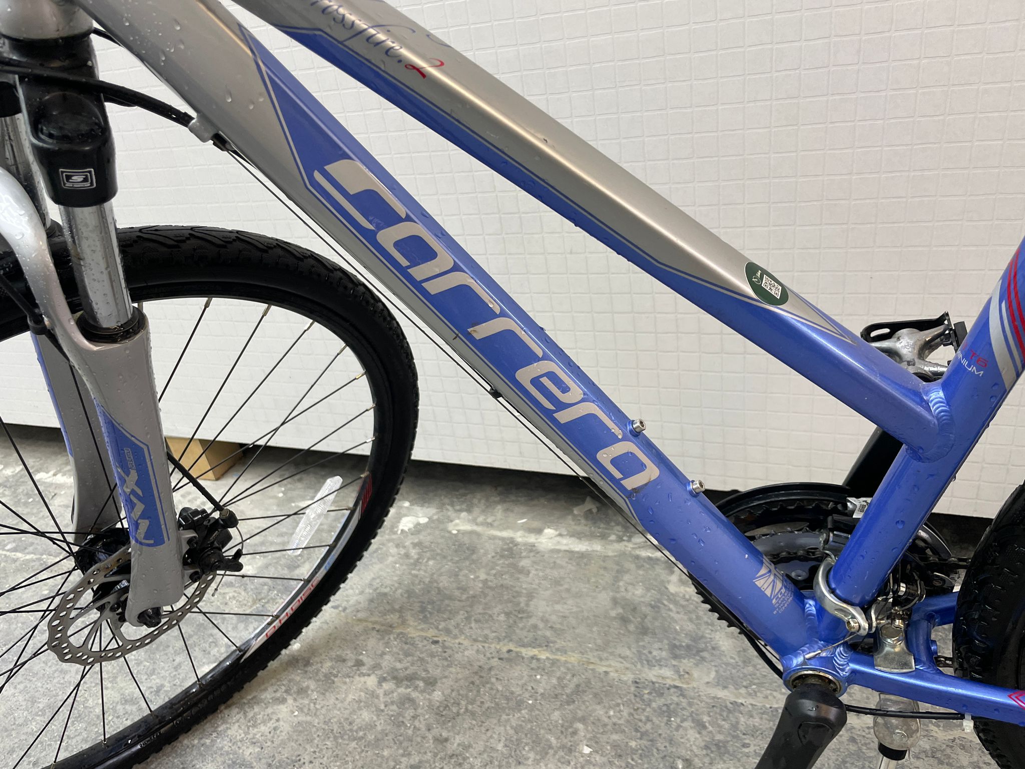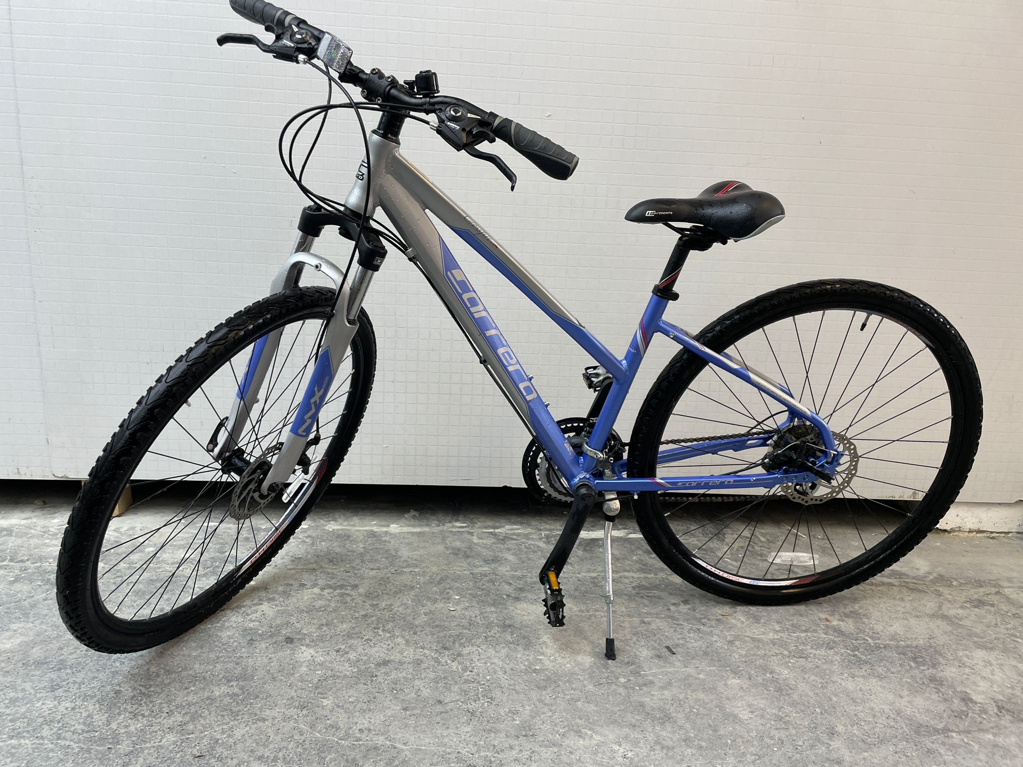 This Carrera Crossfire 2 hybrid bike is a fantastic all-rounder, perfect for commuting, fitness, or exploring light trails. It boasts a lightweight alloy frame for easy handling and speed, combined with a comfortable riding position. Equipped with reliable gears for tackling varied terrain and responsive disc brakes for confident stopping, this bike is ready for any adventure. Everything works as it should – brakes, gears, and tyres are all in great shape. The black frame with green accents gives it a stylish look.