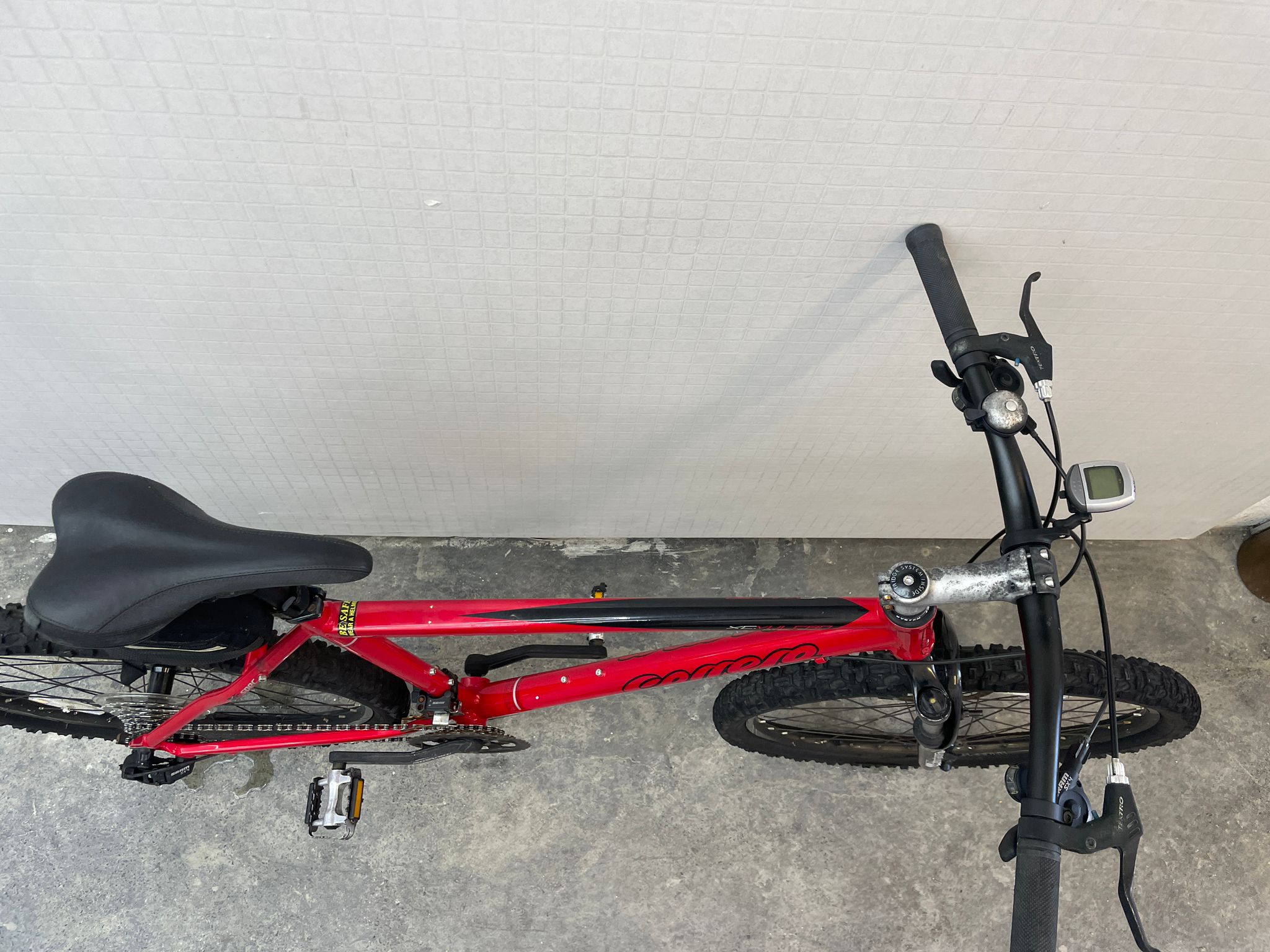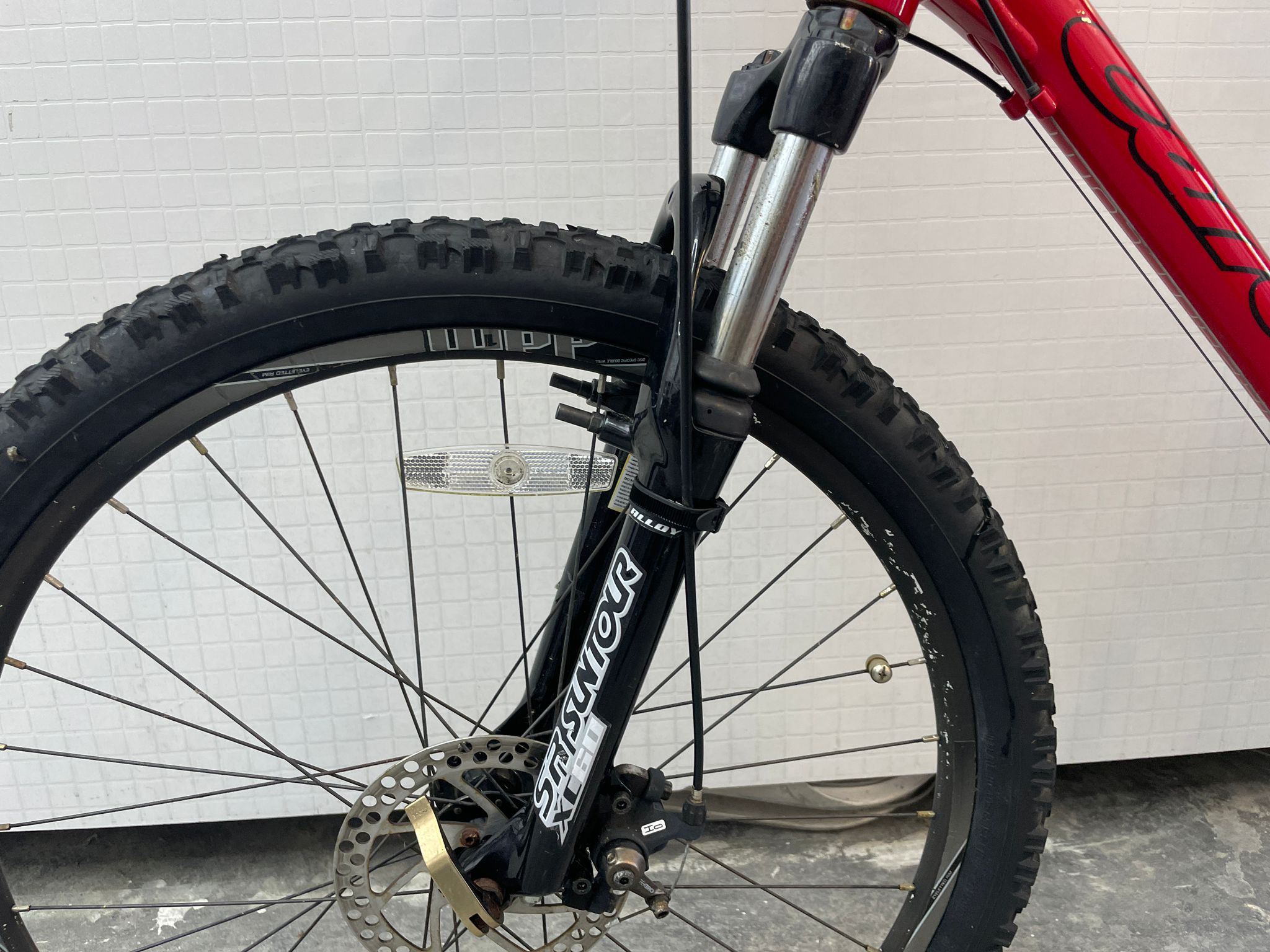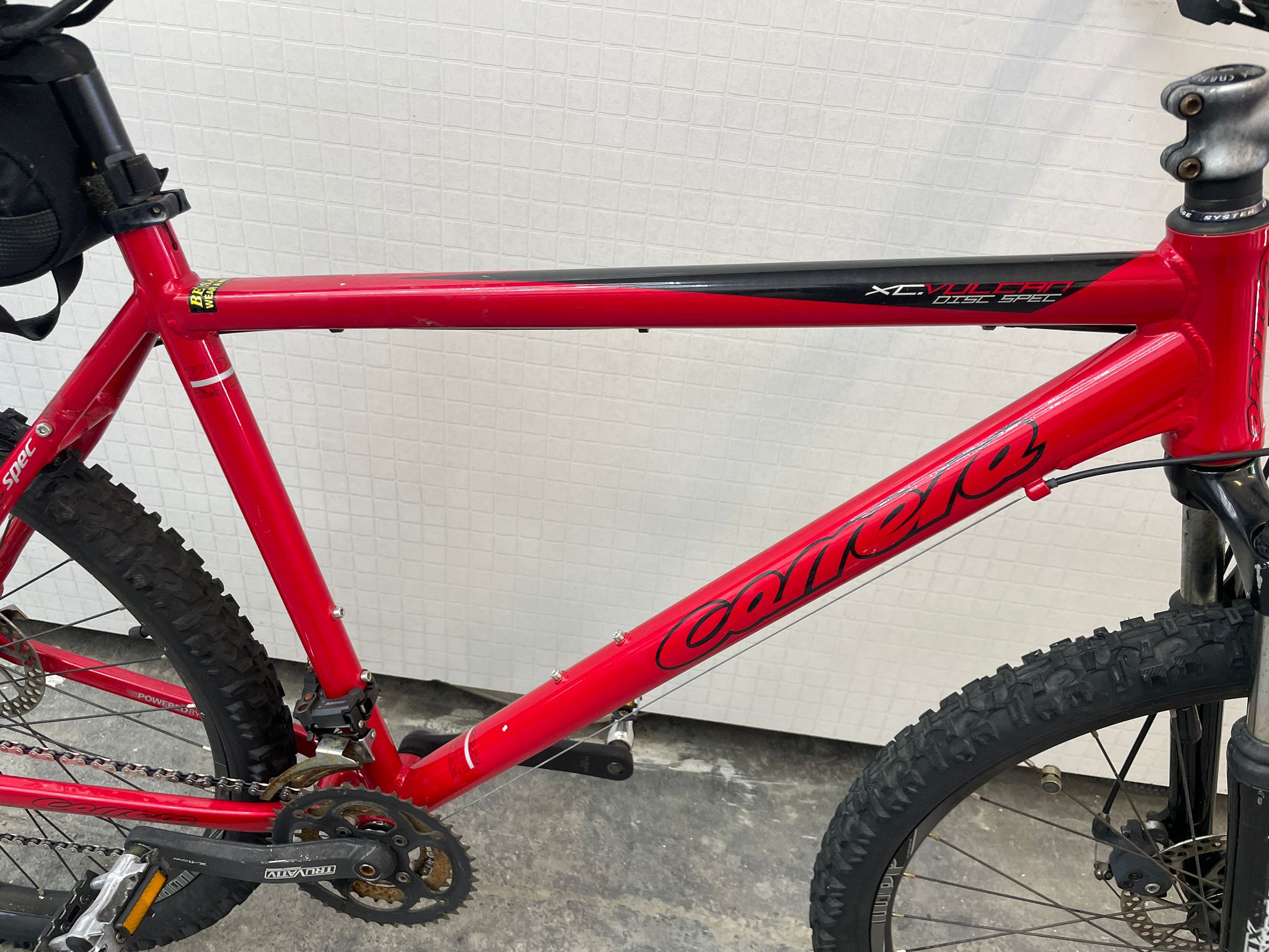 This fantastic Carrera Vulcan mountain bike is a robust and versatile machine, built for exploring trails and enjoying off-road adventures! It features a sleek red frame with classic styling and a durable design, ready to tackle various terrains. Equipped with front suspension, it’s designed to absorb impacts and maintain control on demanding descents and bumpy paths. With its multi-speed Shimano drivetrain, you’ll have precise and efficient gear changes for any incline, while the reliable mechanical disc brakes ensure confident stopping power in all conditions. Everything works as it should – tuned and ready for your next trail ride or weekend exploration!