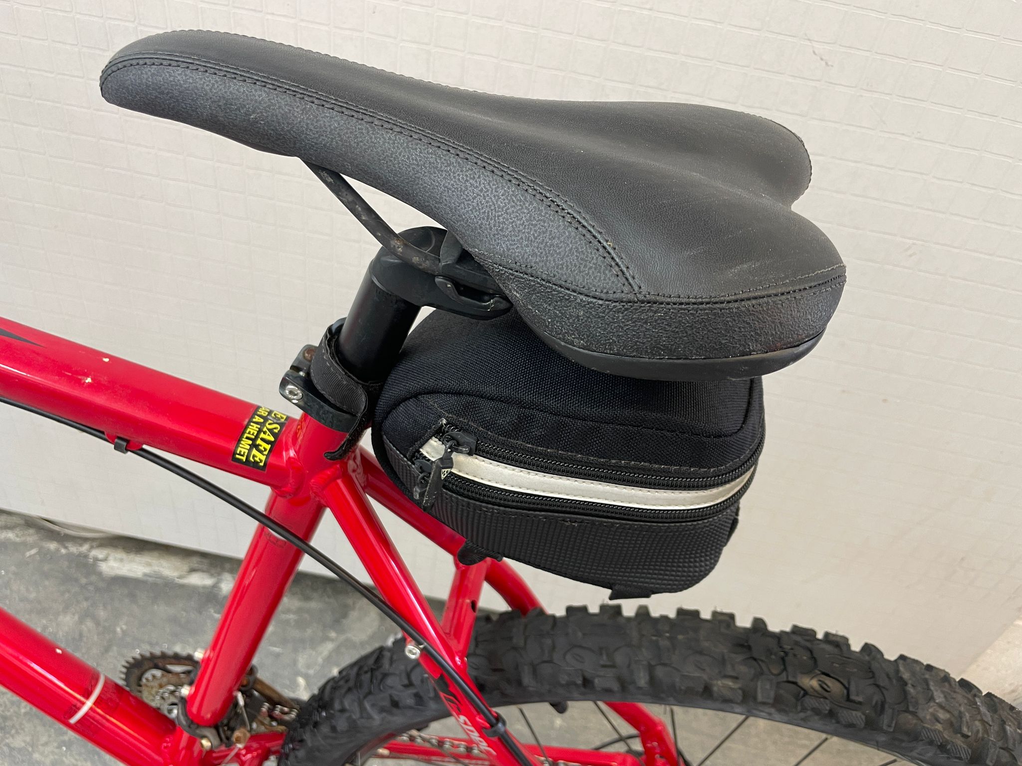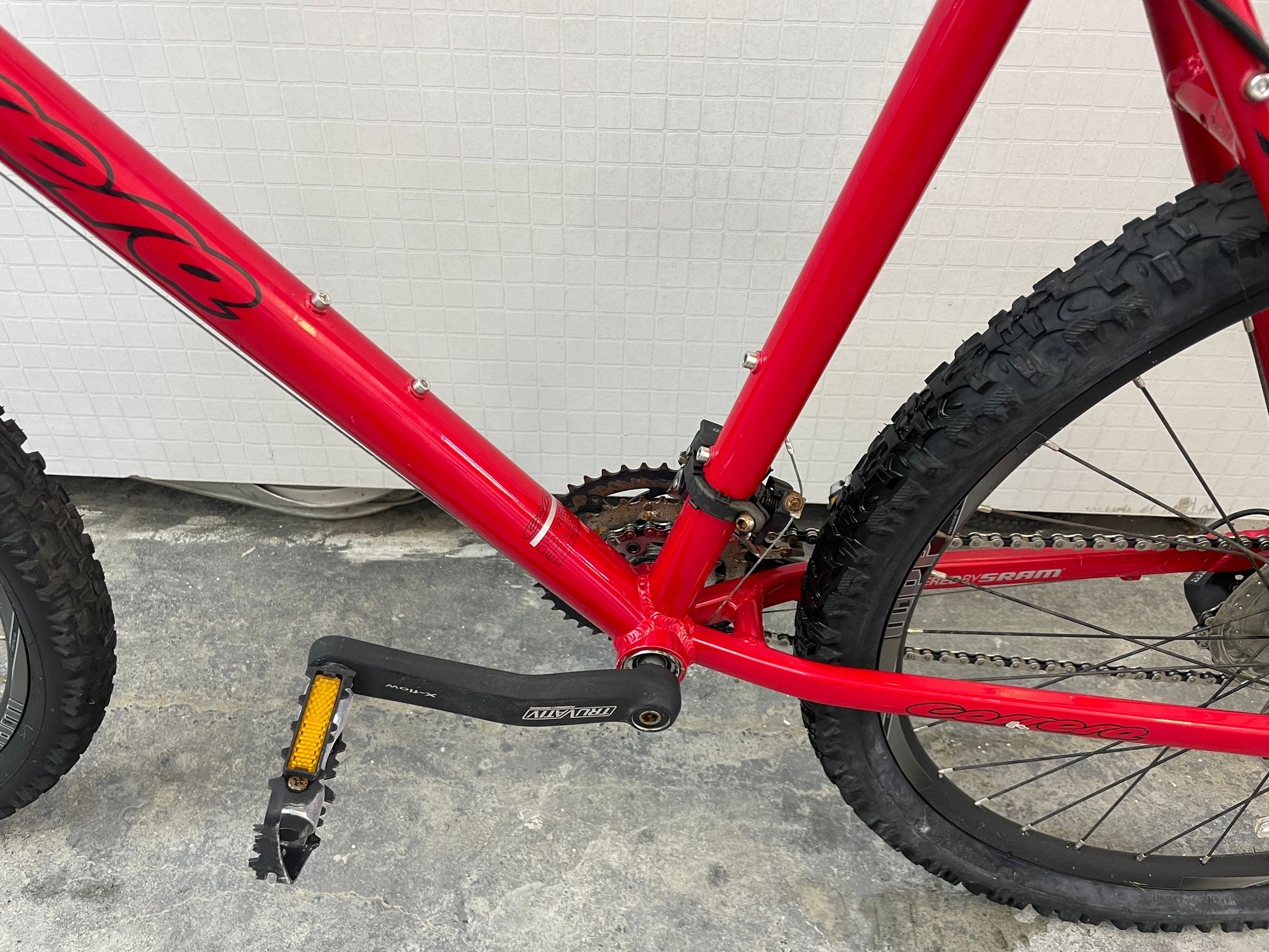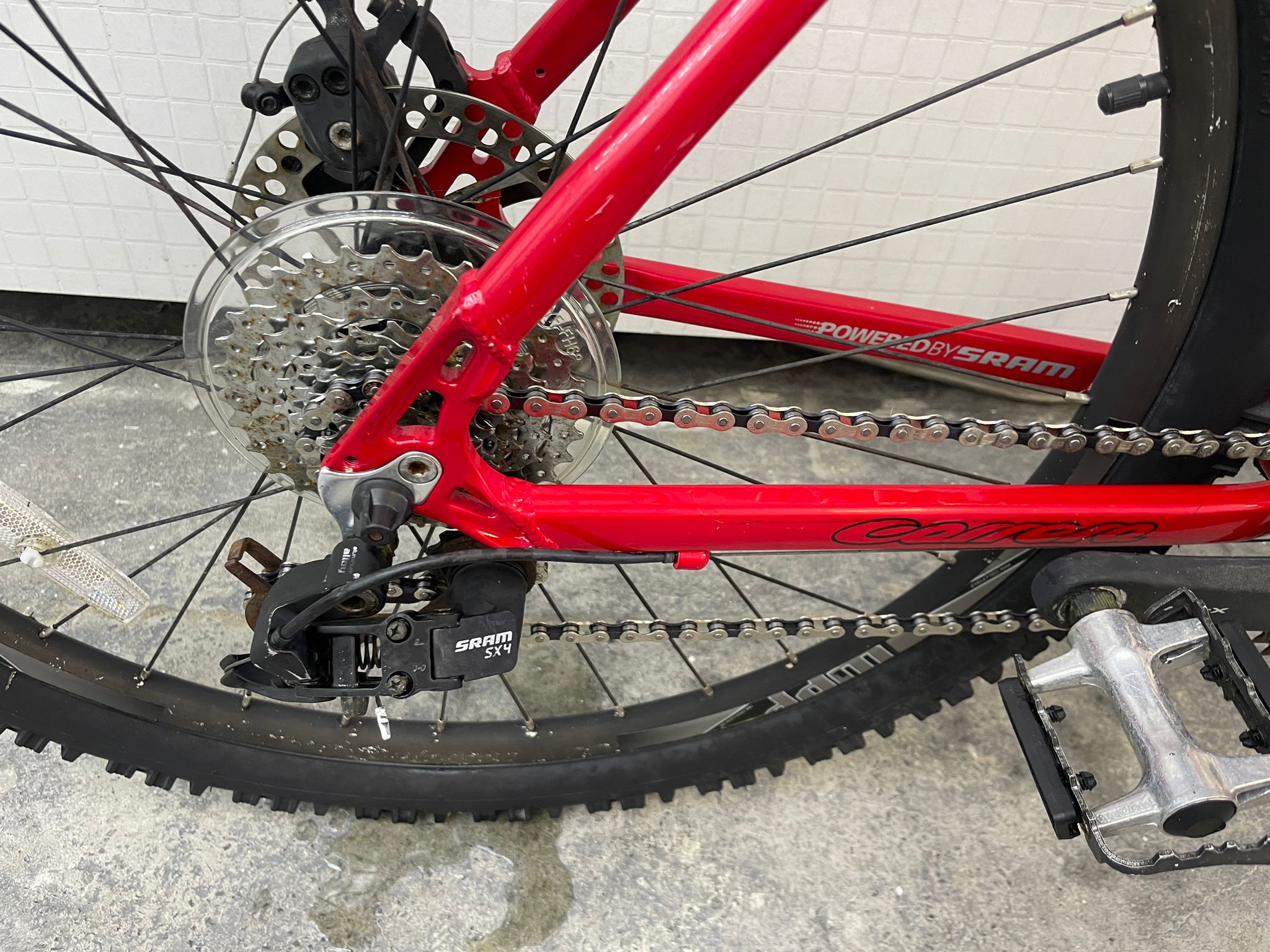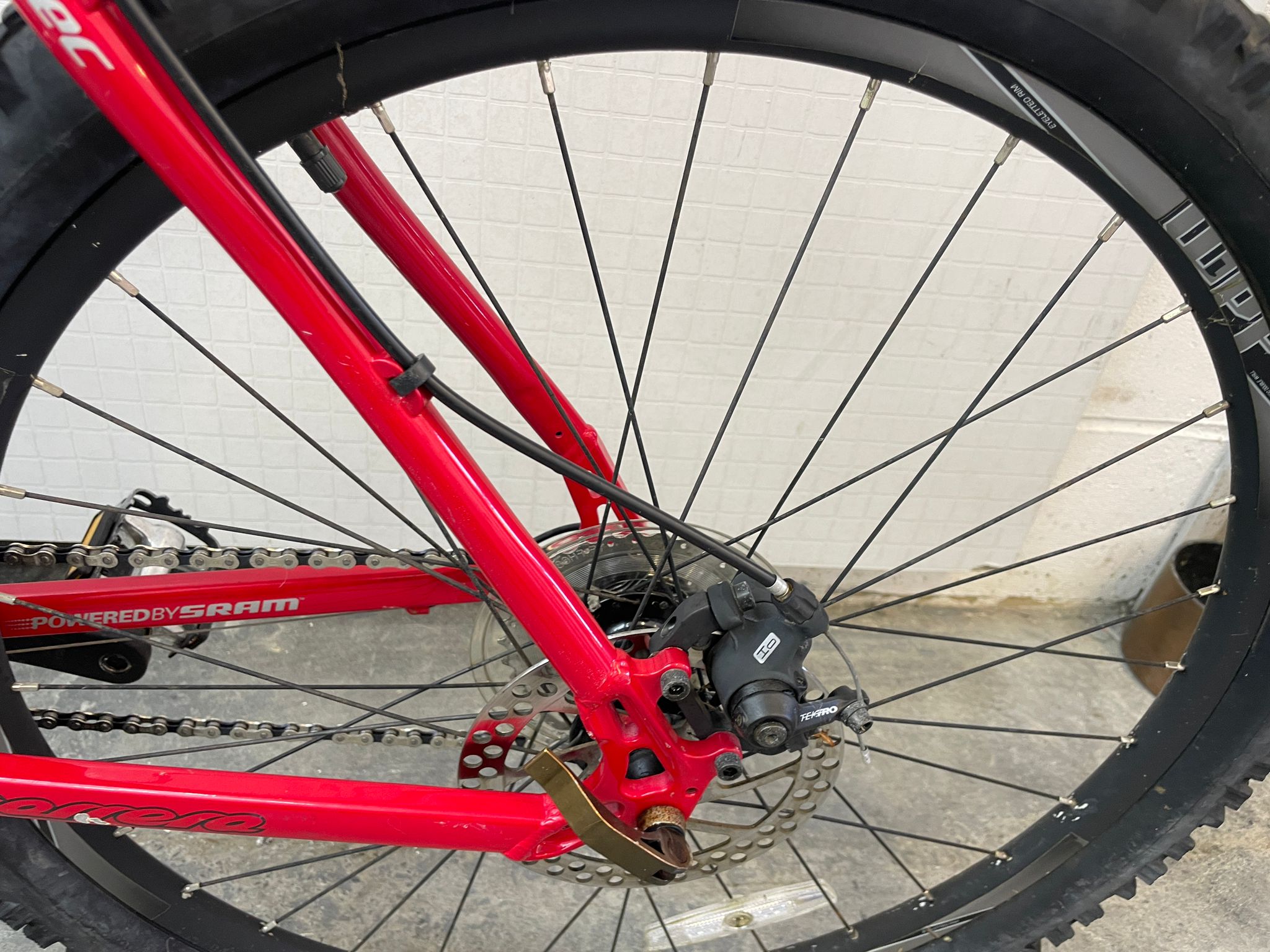 This fantastic Carrera Vulcan mountain bike is a robust and versatile machine, built for exploring trails and enjoying off-road adventures! It features a sleek red frame with classic styling and a durable design, ready to tackle various terrains. Equipped with front suspension, it’s designed to absorb impacts and maintain control on demanding descents and bumpy paths. With its multi-speed Shimano drivetrain, you’ll have precise and efficient gear changes for any incline, while the reliable mechanical disc brakes ensure confident stopping power in all conditions. Everything works as it should – tuned and ready for your next trail ride or weekend exploration!